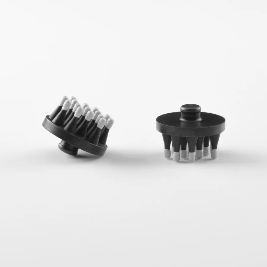 Brush Flex design has been designed for hair penetration and improved comfort. In hairy regions, the legs can easily penetrate hair and thanks to their design, the oriented radial displacement will improve contact with the skin.