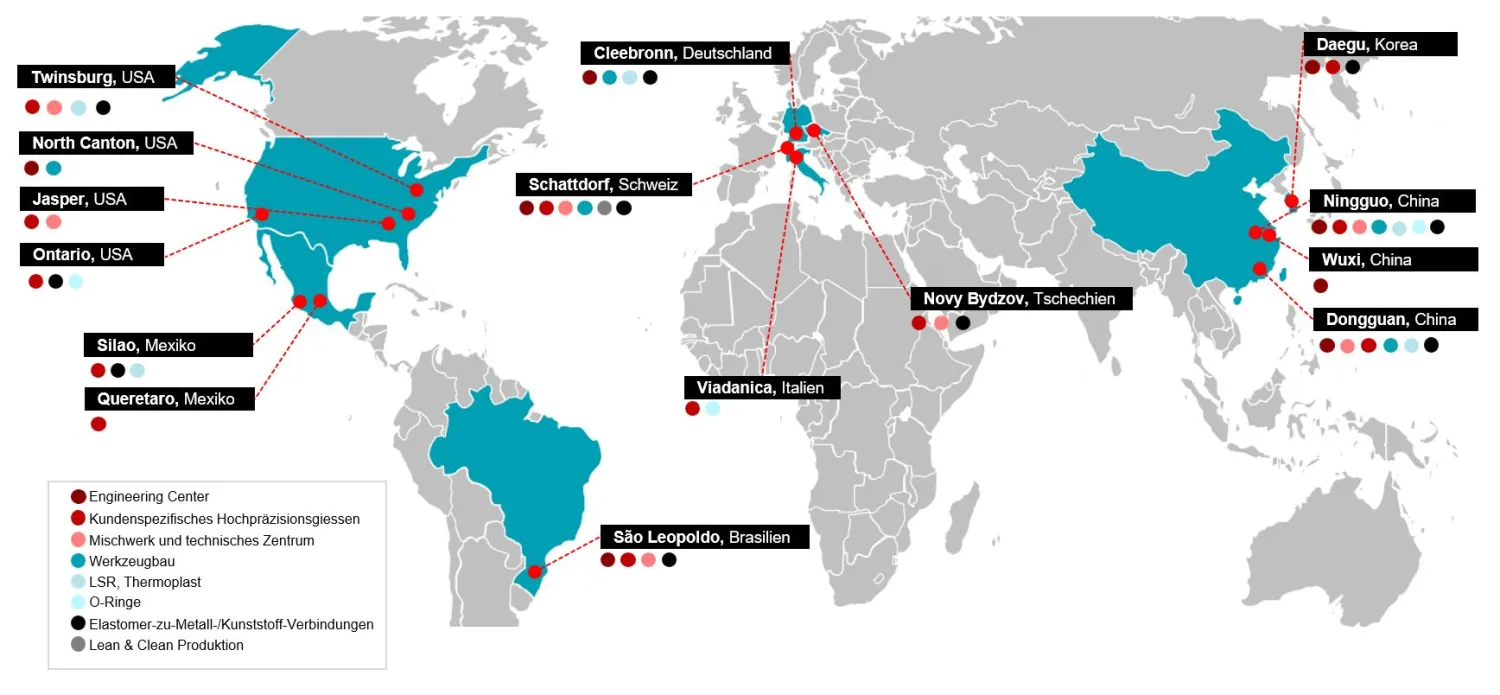 Dätwyler weiss um den Stellenwert eines globalen Ansatzes in Verbindung mit lokalen Dienstleistungen. Daher haben wir ein aus 14 Produktionsstandorten auf vier Kontinenten bestehendes Netzwerk aufgebaut. An allen unseren Standorten arbeiten fachkundige Teams aus Ingenieuren und Wissenschaftlern auf Grundlage der neuesten Erkenntnisse und mit modernster Technologie.