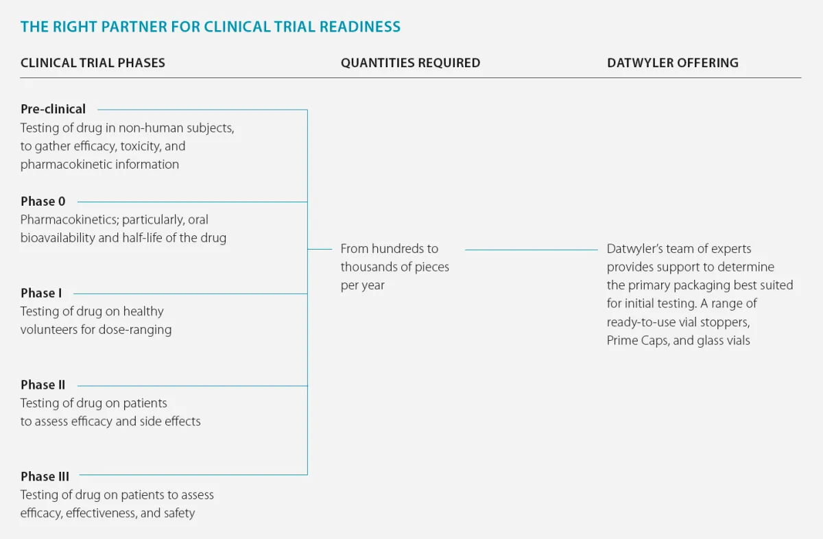 At Datwyler, we are aware of the challenges that customers are facing in their respective fields. Our StarterPack™ is the ideal service to tackle small quantity component needs. We developed the StarterPack™ with SCHOTT to provide our customers with a range of compatible primary and secondary packaging components to be used in every drug development application.