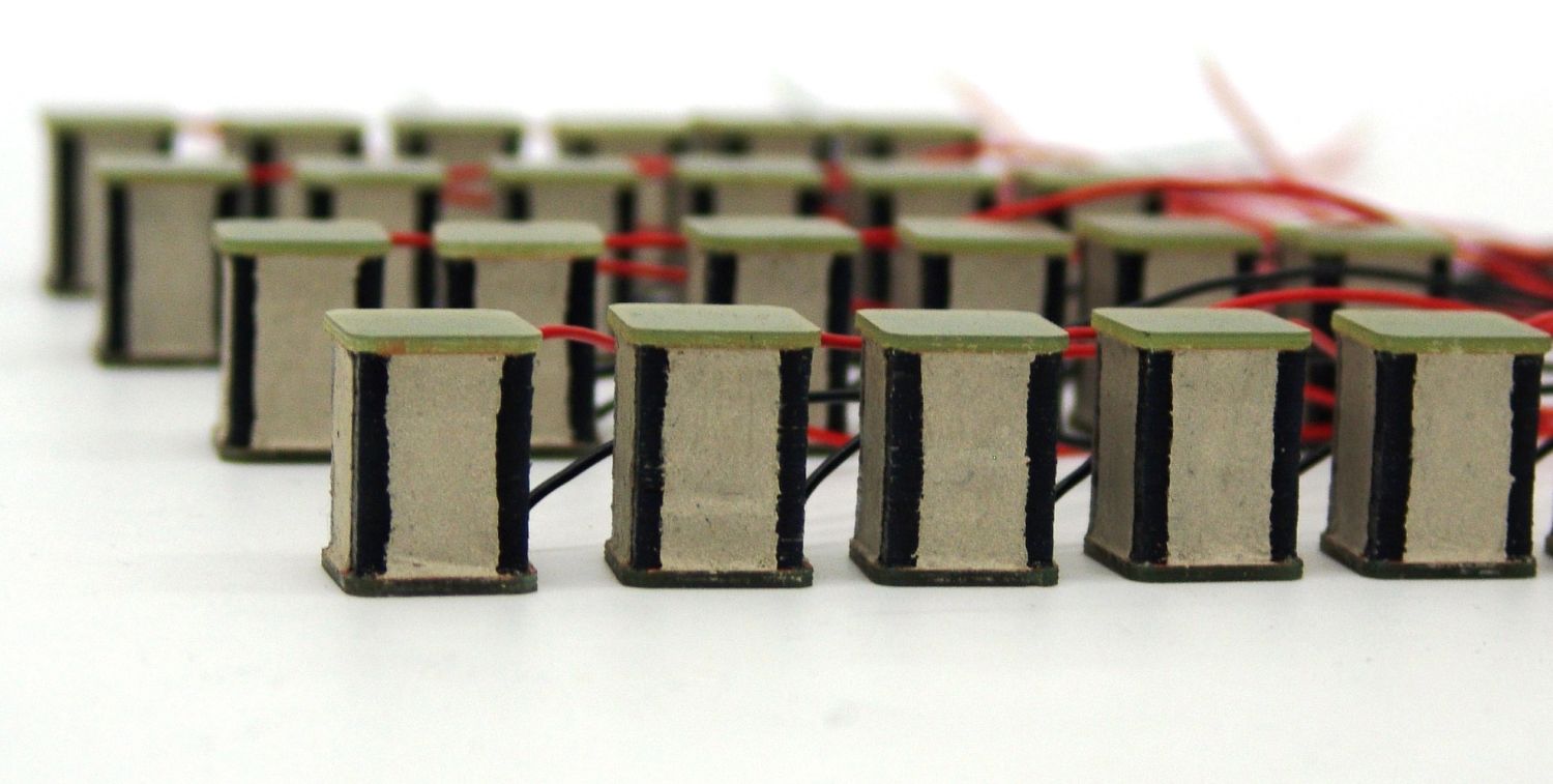 This technology is based on the creation of small capacitors in a three-layer system, consisting of two electrodes constructed using conductive materials and a soft electroactive polymer between them. When voltage is applied to the capacitor the surface electrodes start to move towards each other, which compresses the polymer and thus allows for a small amount of axial movement. These are then created as a stack in order to facilitate additional axial movement, which when voltage is applied means the actuator can be integrated directly into virtually any component that requires actuation without the need for an additional motor or gear.