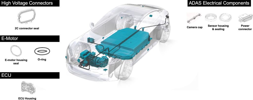 We have developed a number of options – from rubber, edge-bond and LSR (liquid silicone rubber) 2K (two component) gaskets, to O-rings and connector seals, which cover our customers’ system-critical applications within e-powertrains.